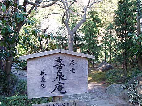 本堂裏の喜泉庵にあがって、枯山水の庭園を眺めながらいただく抹茶の風味もひとしお。さらに、山上を目指すのも忘れてはなりません。山上といっても、きつくもない坂道を数分で着きますから、ご安心を。