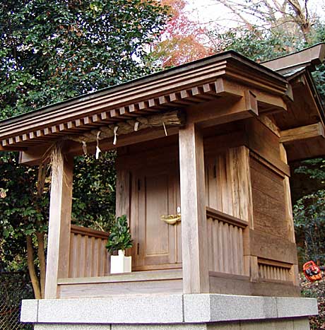 総門の右側の道を境内に沿って登ってまいりますというと、こじんまりとした祠(ほこら)に出会います。へんてつもない祠じゃないかとバカにしてはなりません。ここが、「鎌倉」という名の発祥地だと伝わる「鎌足稲荷」でございます。