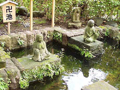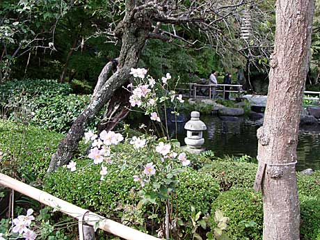 この季節は、紅葉がほんのり色づく程度で、花の色も少ないが、殺風景さはみじんもない。池畔をめぐり石段を登って本堂前に出る。登るにつれて、徐々に海が臨まれてくる。見晴台からは、由比ガ浜、材木座海岸が間近に見え、逗子マリーナまでくっきり。山号が海光山という意味が、おのずから納得できる。