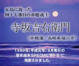 「拙僧は、実は赤穂四十七士の一人。寺坂吉右衛門信行と申す者。家老大石さまのお計らいで、その命令を果たし、切腹を免れたわけだが、その後、諸国を回って同志の回向を続けてきた。この島に渡ったのも、ここにおられた深堀の流人の方にお礼申したい儀があったからである」